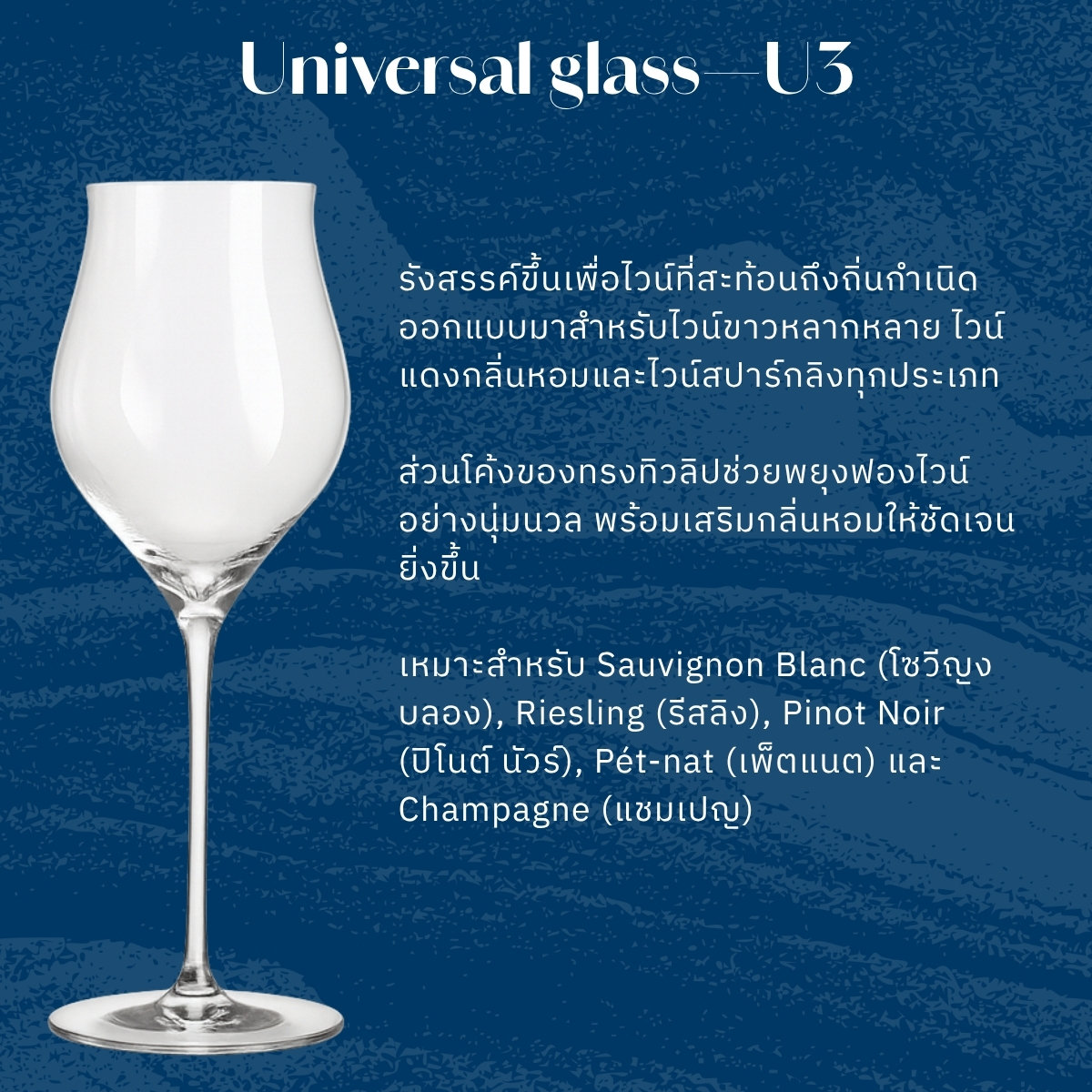 เหมาะสำหรับไวน์ขาว ไวน์แดงกลิ่นหอม และไวน์มีฟอง เช่น Sauvignon Blanc, Riesling, Pinot Noir, Pét-nats และ Champagne