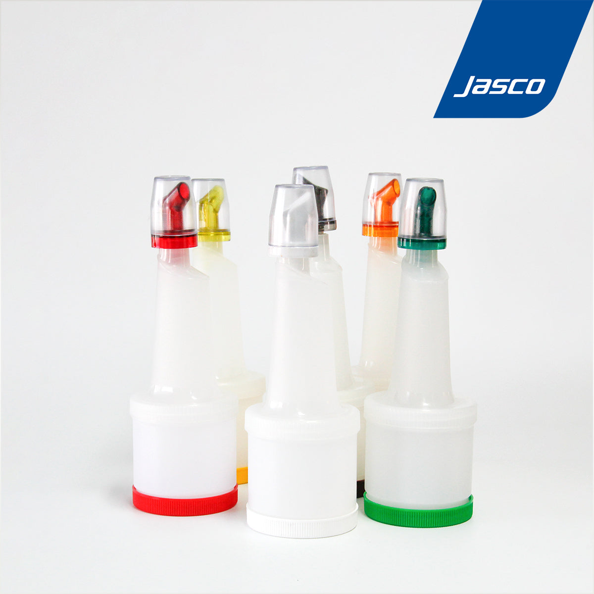 This multi-pour 1 pint (500ml) white container with colored lid serves just about all purpose liquids from sauces, juices, syrup to cocktail mixture in a bar or kitchen settings. Be it a storage or serving needs, this product completes your countertop collection. Easy clean, dish-washer safe. High density PE plastic for durablity and BPA free. Available in 3 sizes. Interchangeable colored lids are available in 6 colors. All parts can be used in combination with coordinated set lids, neck and spout.